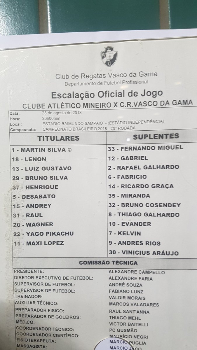 Novidade no Vasco: Raul no lugar de Thiago Galhardo. Valdir vai com time mais fechado contra o Galo. #trhorto