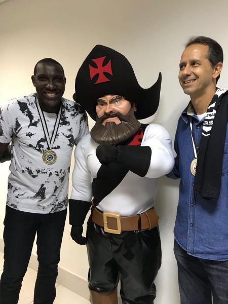 Odvan e Márcio Cazorla posam para foto com novo mascote do Vasco; veja