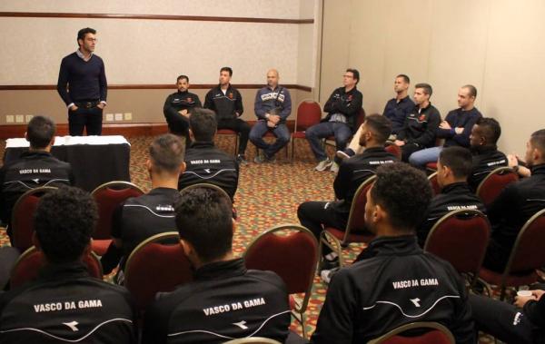 O técnico Alberto Valentim já se apresentou ao elenco em uma reunião onde estão hospedados aqui em Curitiba. O treino será 16h, mas antes teremos a apresentação do novo treinador (Foto: Divulgação / Vasco) #gevas