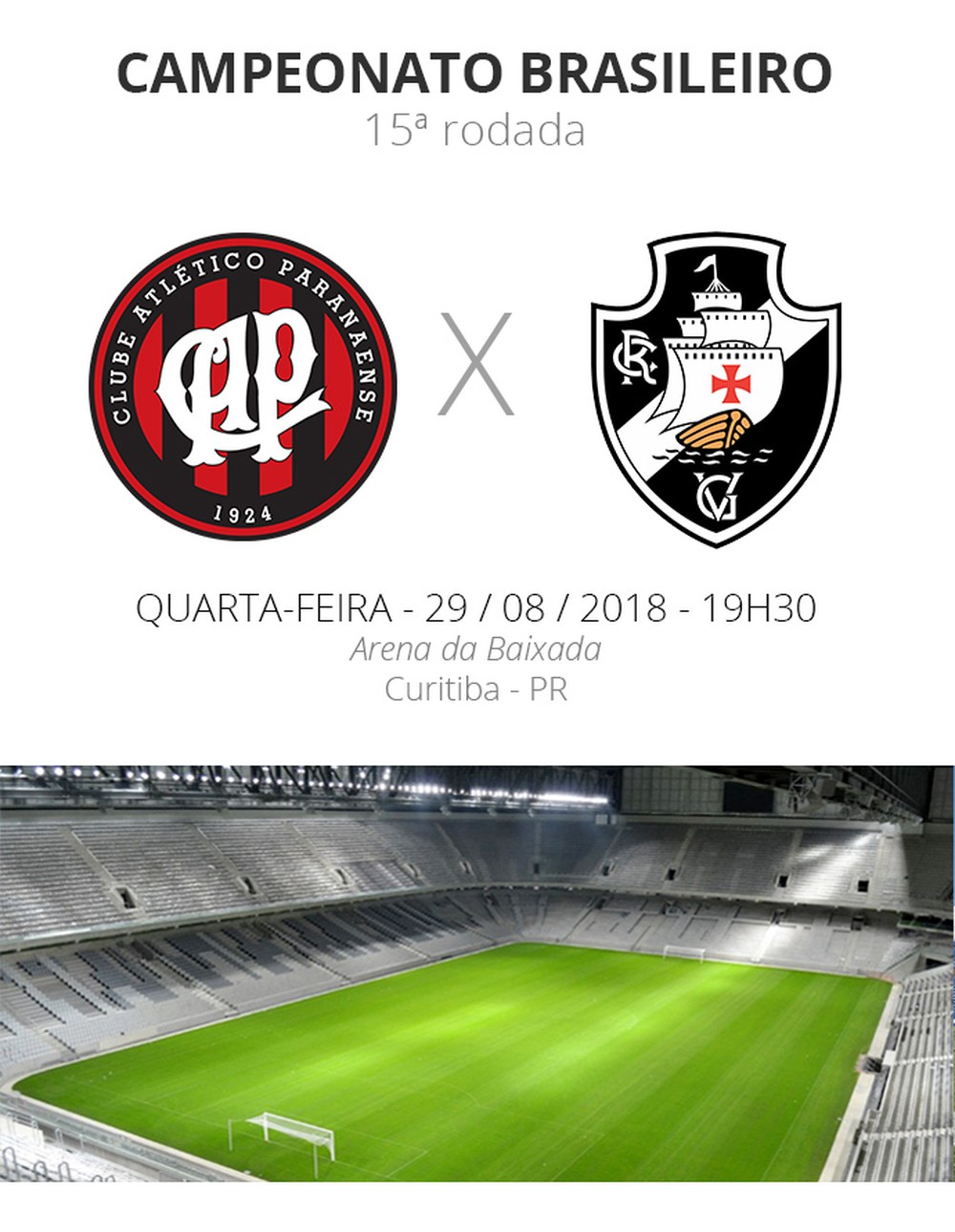 Atlético-PR e Vasco entram em campo, a partir das 19h30 (horário de Brasília), desta quarta-feira, na Arena da Baixada, em jogo adiado da 15ª rodada do Campeonato Brasileiro.