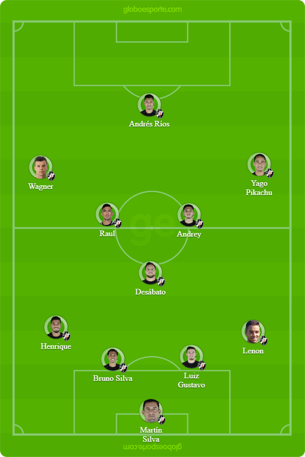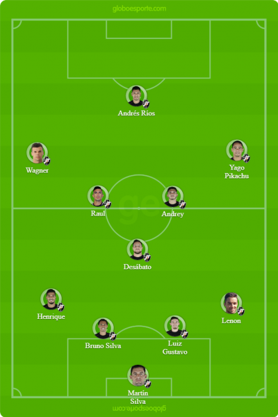 Quem está fora: Giovanni Augusto (dores no tornozelo), Ramon (edema na coxa), Leandro Castan (luxação no ombro), Breno (problema no joelho), Werley (fratura no braço esquerdo), Henríquez (lesão na coxa esquerda) e Rildo (cirurgia no ombro esquerdo).