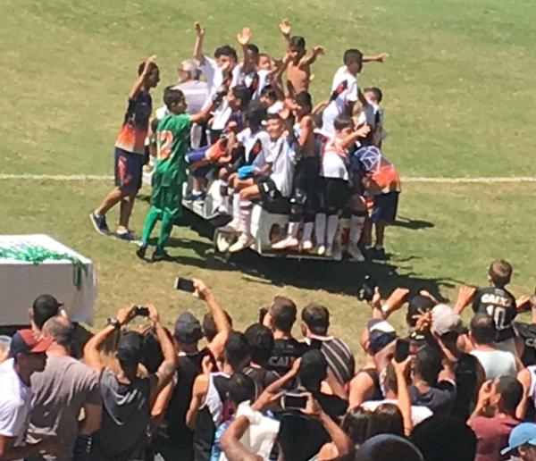 Garotada do Sub-11 do @crvascoodagama venceu o @Flamengo agora há pouco em São Januário, de virada, por 4 a 3, e conquistou o título de campeão metropolitano da categoria. Time rubro-negro abriu 2 a 0, depois 3 a 1, mas os meninos vascaínos buscaram a reação e levaram o troféu.