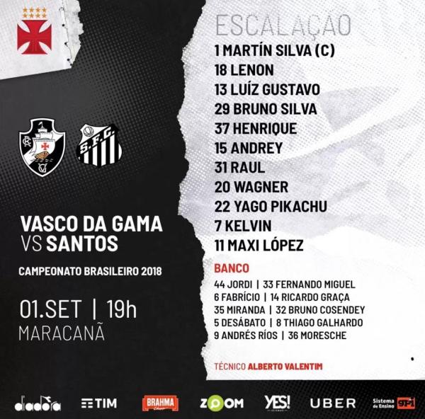 Escalação do Vasco confirmada. Kelvin no lugar de Desábato e Wagner volta no lugar de Vinícius Araújo #lanceMARACA