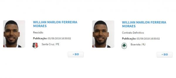 Contrato de Willian Maranhão com o Santa Cruz já foi rescindido. Agora ele é do Boavista-RJ, na teoria. Falta a rescisão com o clube de Saquarema para, enfim, oficializar no Vasco. Atividades do BID se encerram às 19h, e a inscrição para Série A encerra amanhã #lanceVAS