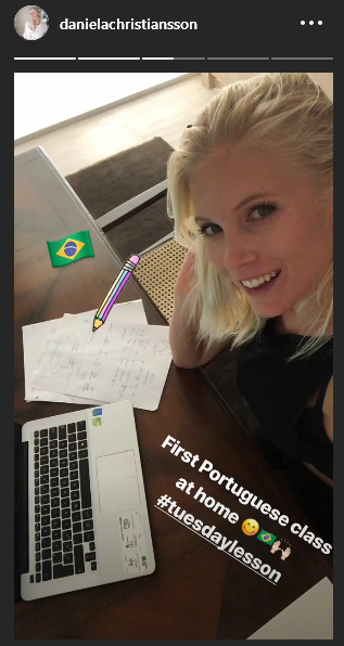 Namorada de Maxi López, modelo sueca Daniela Christiansson publica foto da sua 1ª aula de português