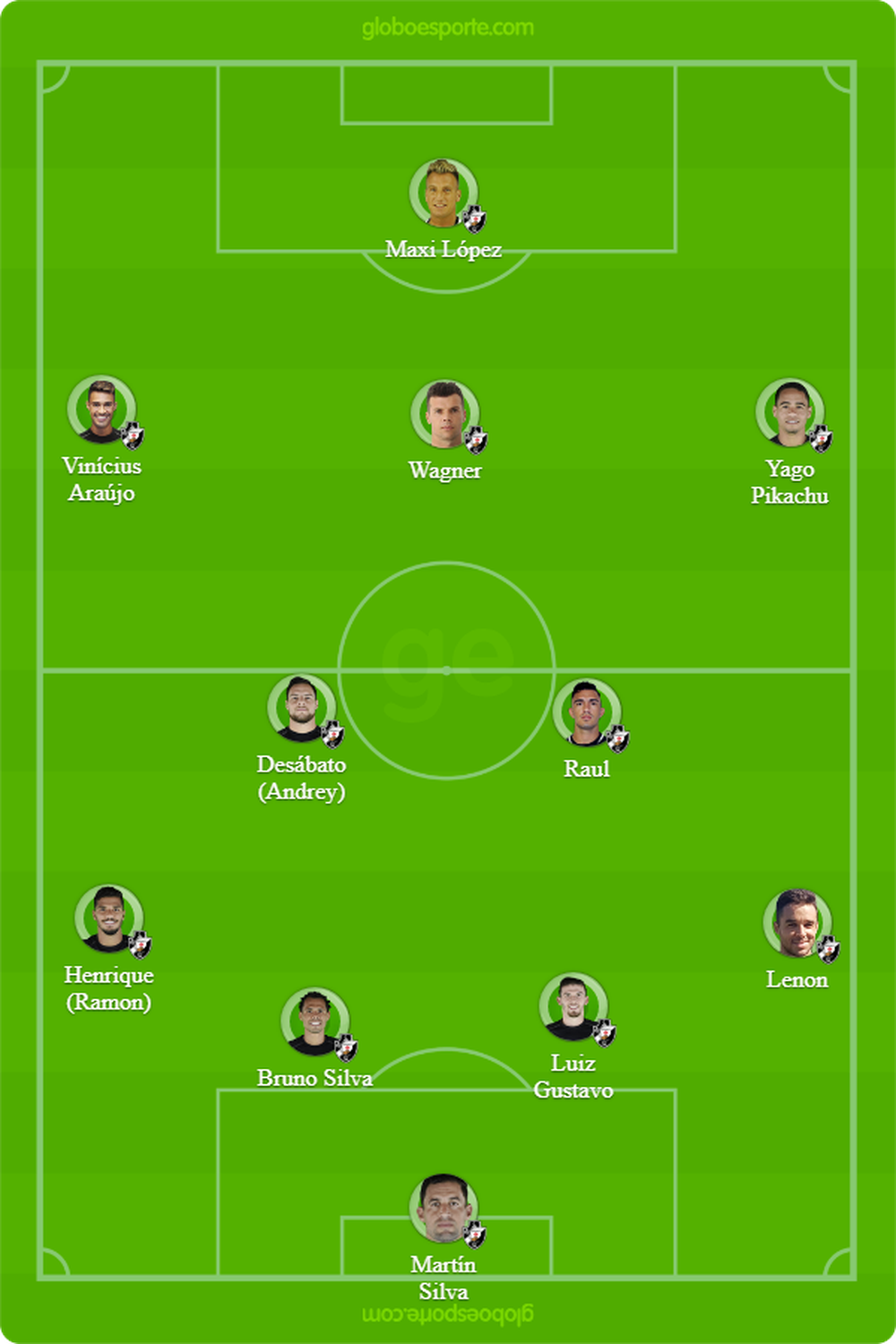 Quem está fora: Giovanni Augusto (dores no tornozelo), Leandro Castan (luxação no ombro), Breno (problema no joelho), Henríquez (lesão na coxa esquerda) e Rildo (cirurgia no ombro esquerdo).