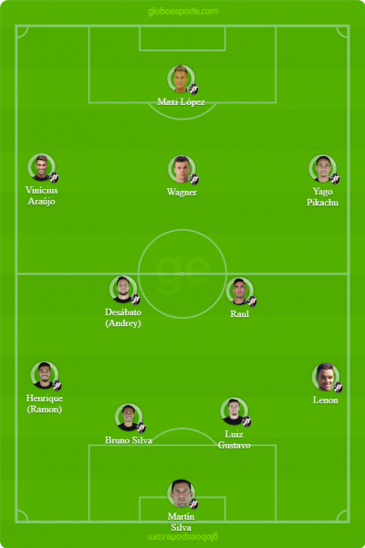 Quem está fora: Rafael Moura (suspenso), Lima (na transição), Aylon (fratura no braço esquerdo) e Ruy (edema na coxa direita).