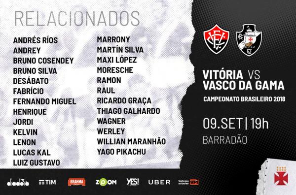 Confira os relacionados do Vasco para o jogo contra o Vitória