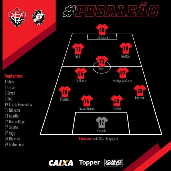 Veja a escalação do Vitória para o jogo contra o Vasco