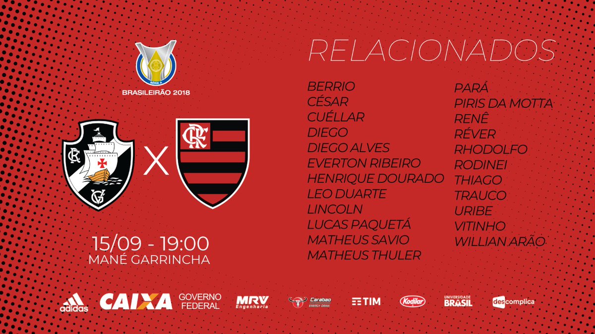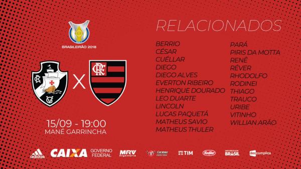Urubu divulga os relacionados para o clássico deste sábado contra o Vasco