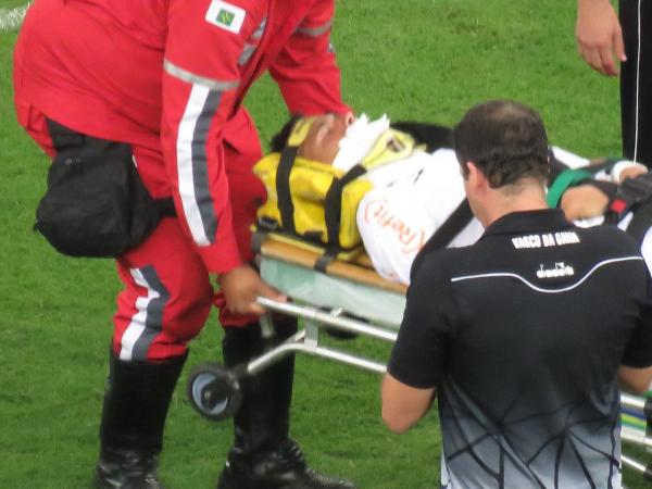 Bruno Silva chegou a ficar desacordado no gramado. Instantes depois, o jogador despertou. Ele foi imboilizado e deixou o campo de ambulância.