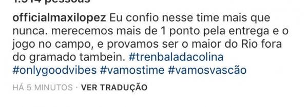 Maxi López, no instagram, publicou que o time provou ser o maior do Rio'. E a comemoração com trem-bala, que ele já havia prometido, foi cumprida #lanceVAS