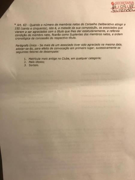 Constatamos que o presidente do Conselho Deliberativo, sr. Roberto Monteiro, foi alçado à condição de Membro Efetivo, passando por cima até de seus pares de política e contrariando o artigo 63, que determina ordem cronológica de substituição de membros natos com a data de admissão como sócio sendo o primeiro critério.