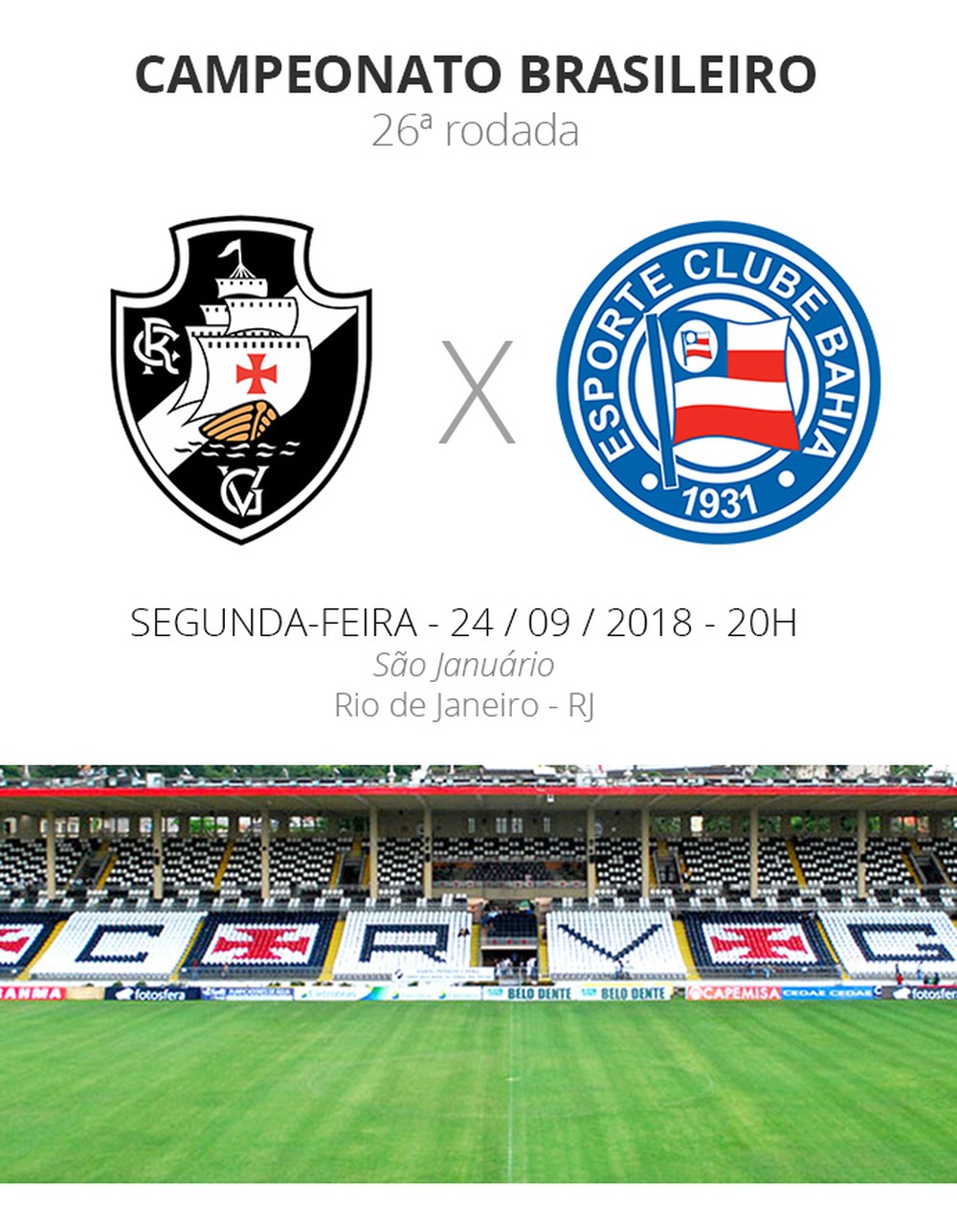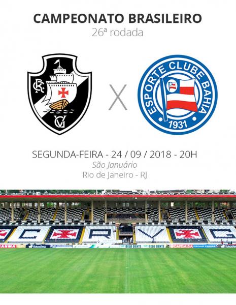 Vasco e Bahia encerram nesta segunda-feira, às 20h, em São Januário, a rodada 26 do Campeonato Brasileiro. A equipe cruz-maltina entra em campo com a pressão no mais alto nível, já que precisa de toda forma a vitória para tentar melhorar sua condição na luta contra o rebaixamento - está em 18º na classificação com 25 pontos. O Bahia é um concorrente direto, mas está em situação mais confortável, com cinco pontos a mais, no 14º lugar.