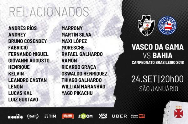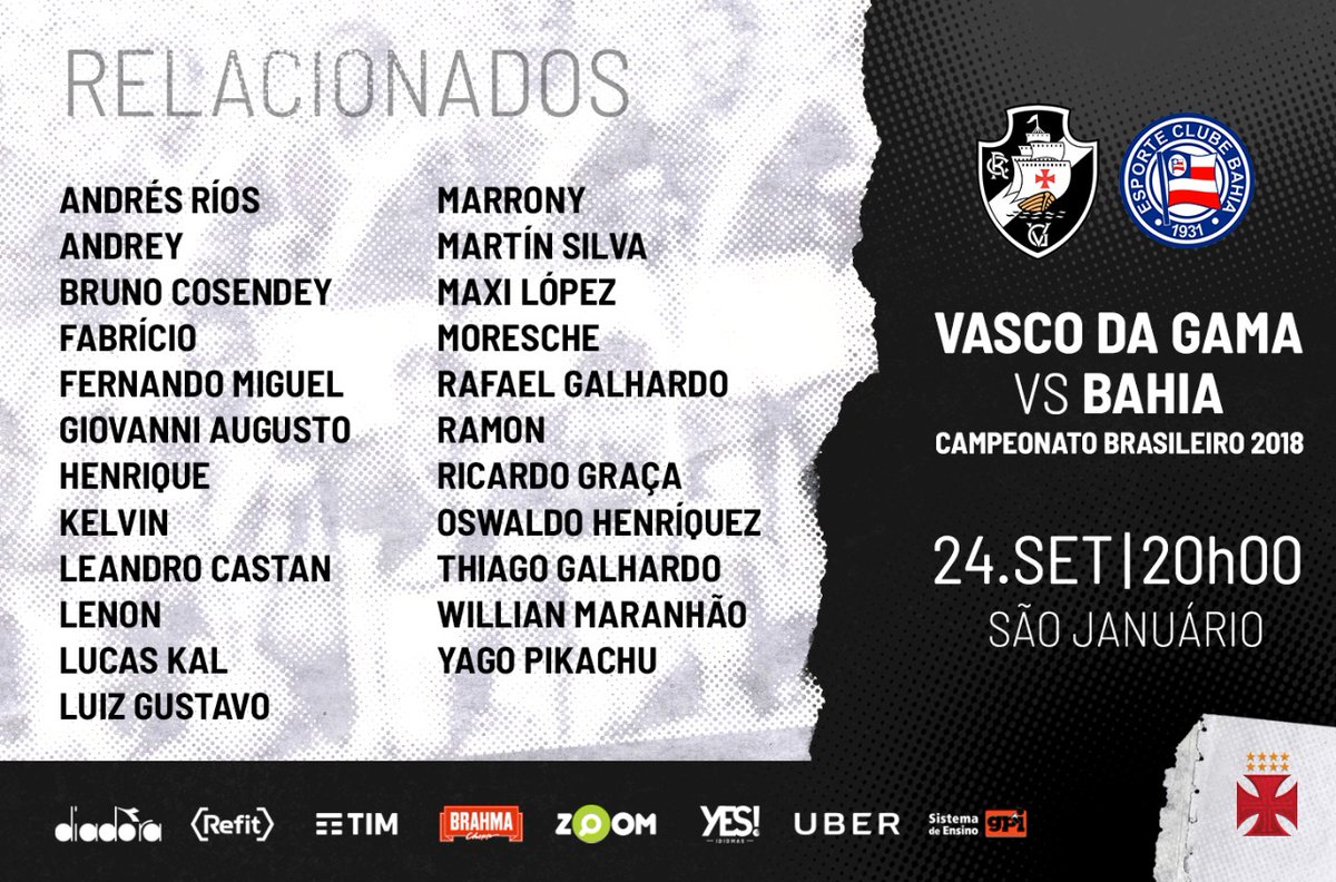 24/09/18 - Confira desfalques e pendurados de Vasco e Bahia