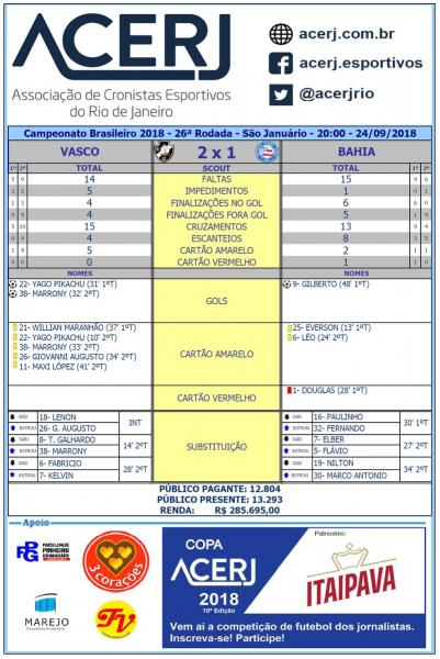Scout Final de Vasco e Bahia pela 26ª Rodada do Campeonato Brasileiro 2018 em São Januário #acerjinforma #VASxBAH #Brasileirao2018 #SerieA