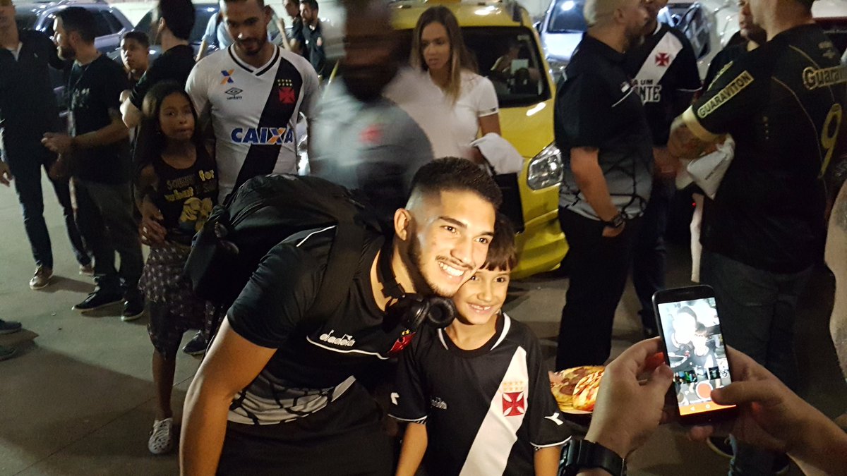 Jogadores do Vasco começam a passar pela zona mista. Muitos torcedores e familiares por aqui. Andrey tirou foto com alguns. #gevas