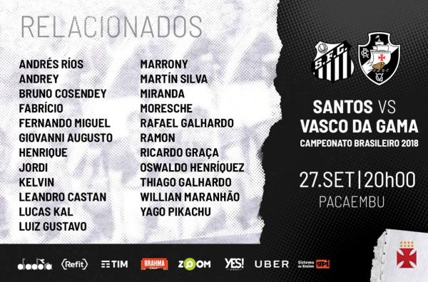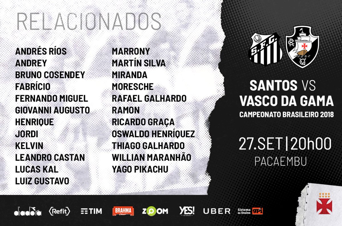 Confira os relacionados do Vasco para o jogo contra o Santos