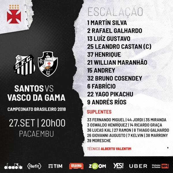 24/09/18 - Confira a escalação do Vasco; Thiago Galhardo é a novidade no time titular