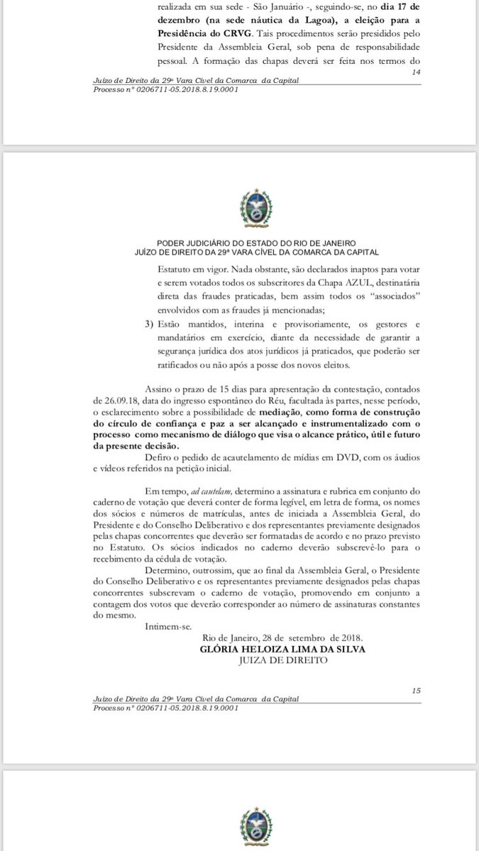 URGENTE! Eleição do Vasco está anulada em pedido de tutela pela juíza tabelar Gloria Heloiza Lima da Silva, da 28a Vara Cível do Tribunal de Justiça do Rio de Janeiro #lanceVAS