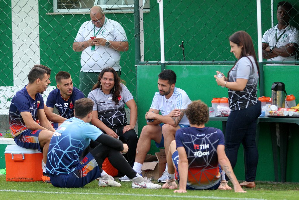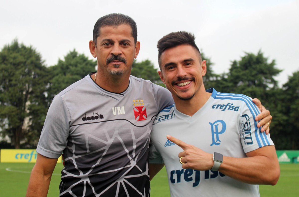 Entre um treino e outro no CT do Palmeiras, a 'casa' de Valentim por bastante tempo, os jogadores dos dois elencos conversaram no gramado. Castan e Willian jogaram juntos no Corinthians / Luan foi criado na Colina com Cosendey e Henrique / E o encontro dos bigodes #lanceVAS