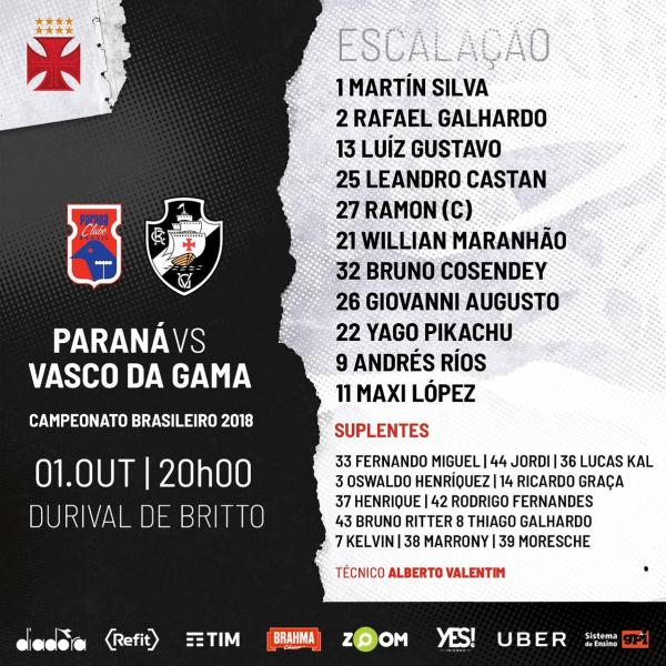 18:55 - Vasco tem retrospecto favorável contra o Paraná na história dos confrontos