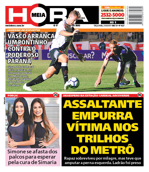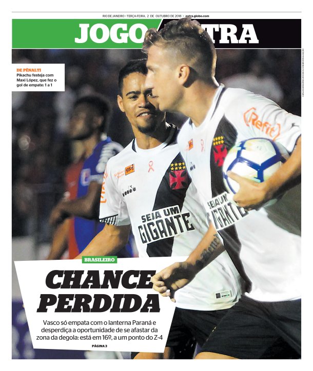 Na última 2ª-feira, o Vasco empatou com o Paraná por 1 a 1 em Curitiba pelo Campeonato Brasileiro e deixou o Z4. O gol vascaíno foi marcado por Maxi López, de pênalti.