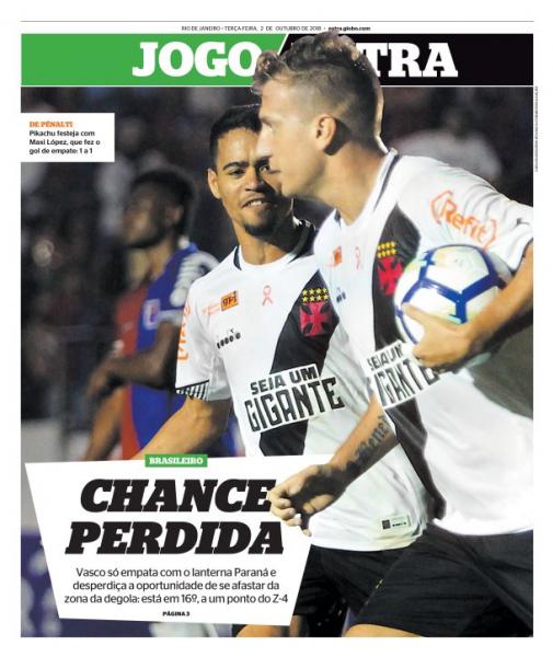 Veja como a imprensa destacou o empate do Vasco diante do Paraná