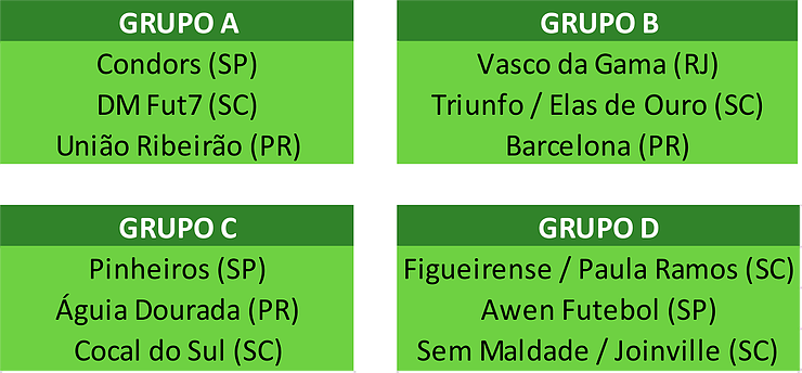 Esta será a primeira edição da Liga Fut7 na categoria feminina e reunirá 12 equipes na briga pelo título. Estarão em campo grandes atletas do futebol 7 brasileiro e deste evento serão escolhidas as que irão representar o Brasil na Copa do Mundo de Futebol 7 Feminino entre os dias 11 e 15 de dezembro.