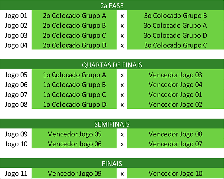 2 - Todos os jogos que terminarem empatados serão decididos nos shoot-outs e o vencedor ganhará 02 pontos, enquanto o perdedor ganha 01 ponto.