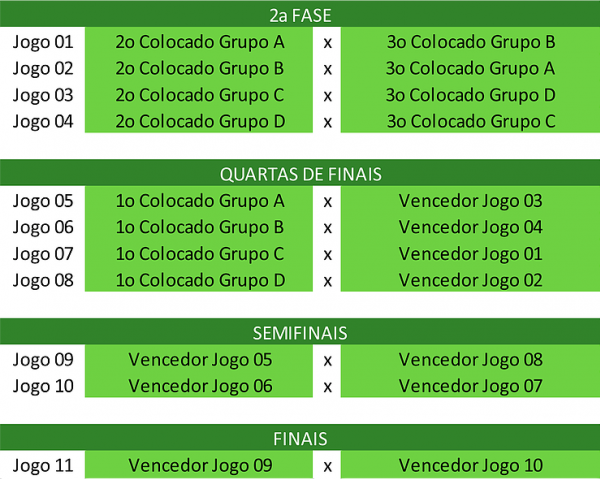 Na primeira fase serão 04 grupos com 03 equipes, classificando a primeira colocada de cada grupo para as quartas de finais da competição, enquanto a segunda e terceira colocadas disputam a segunda fase para determinar mais 04 credenciadas para as quartas de finais que serão disputadas em jogos eliminatórios até a final.