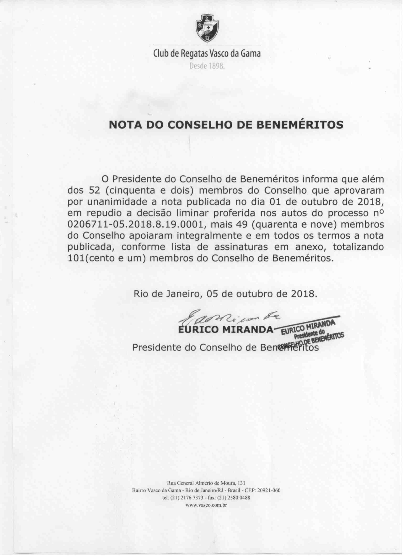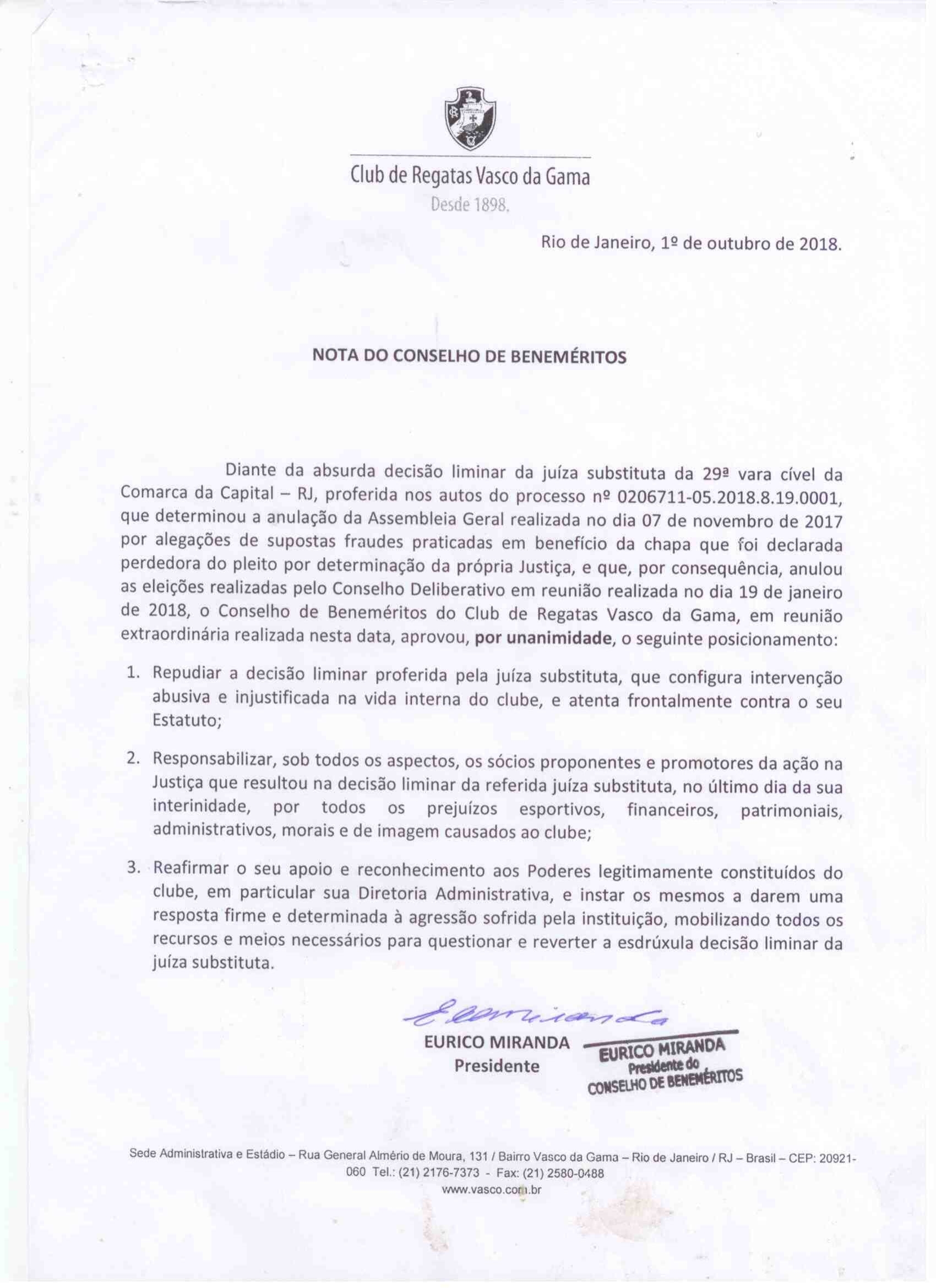 05/10/18 - Confira trechos do recurso do Vasco na tentativa de reverter anulação da eleição