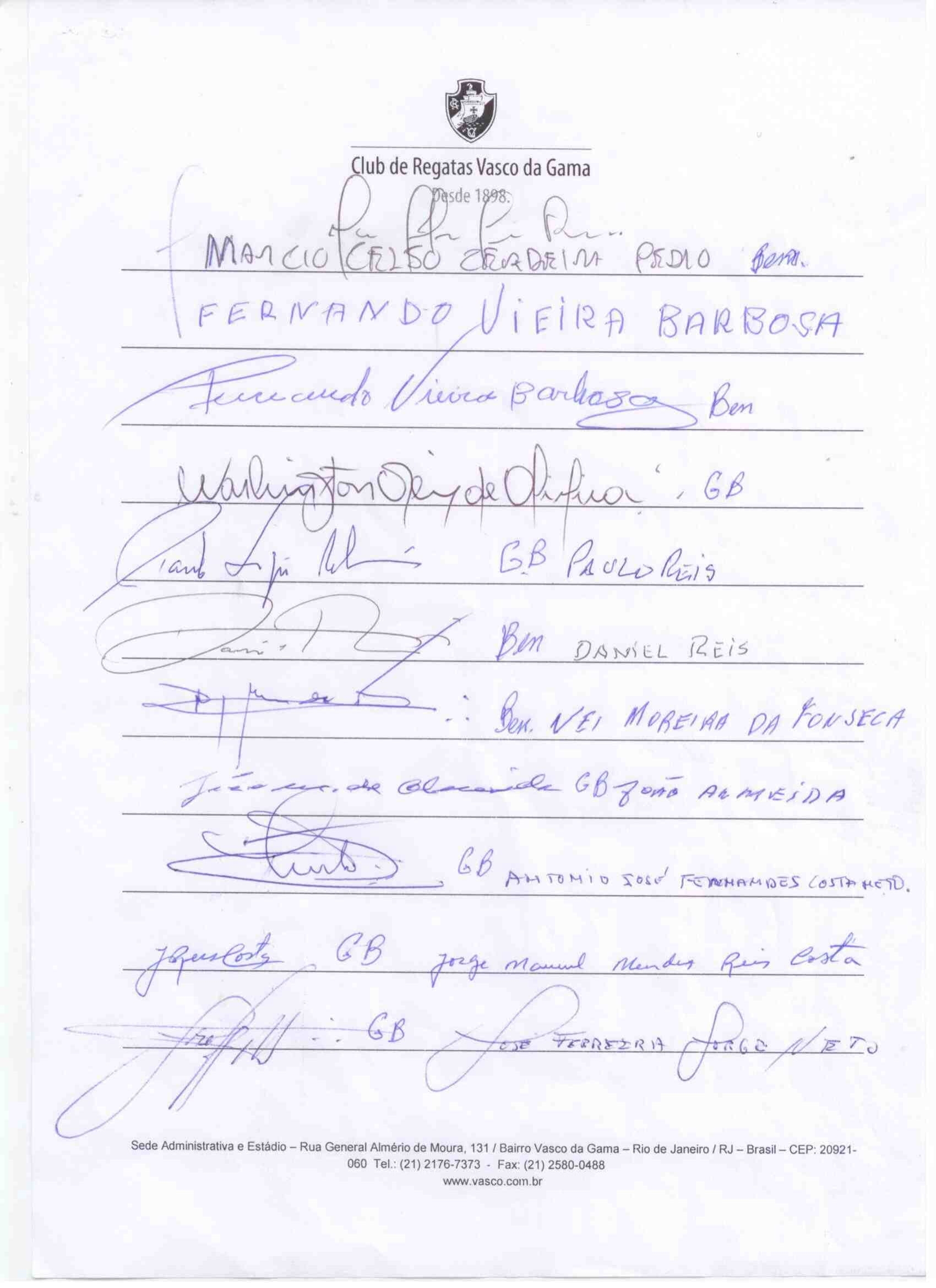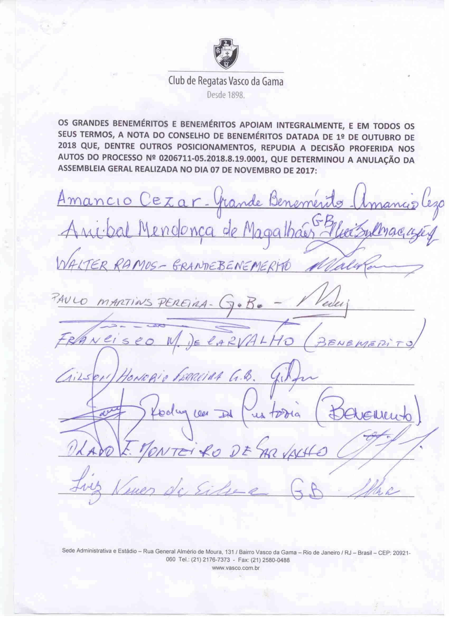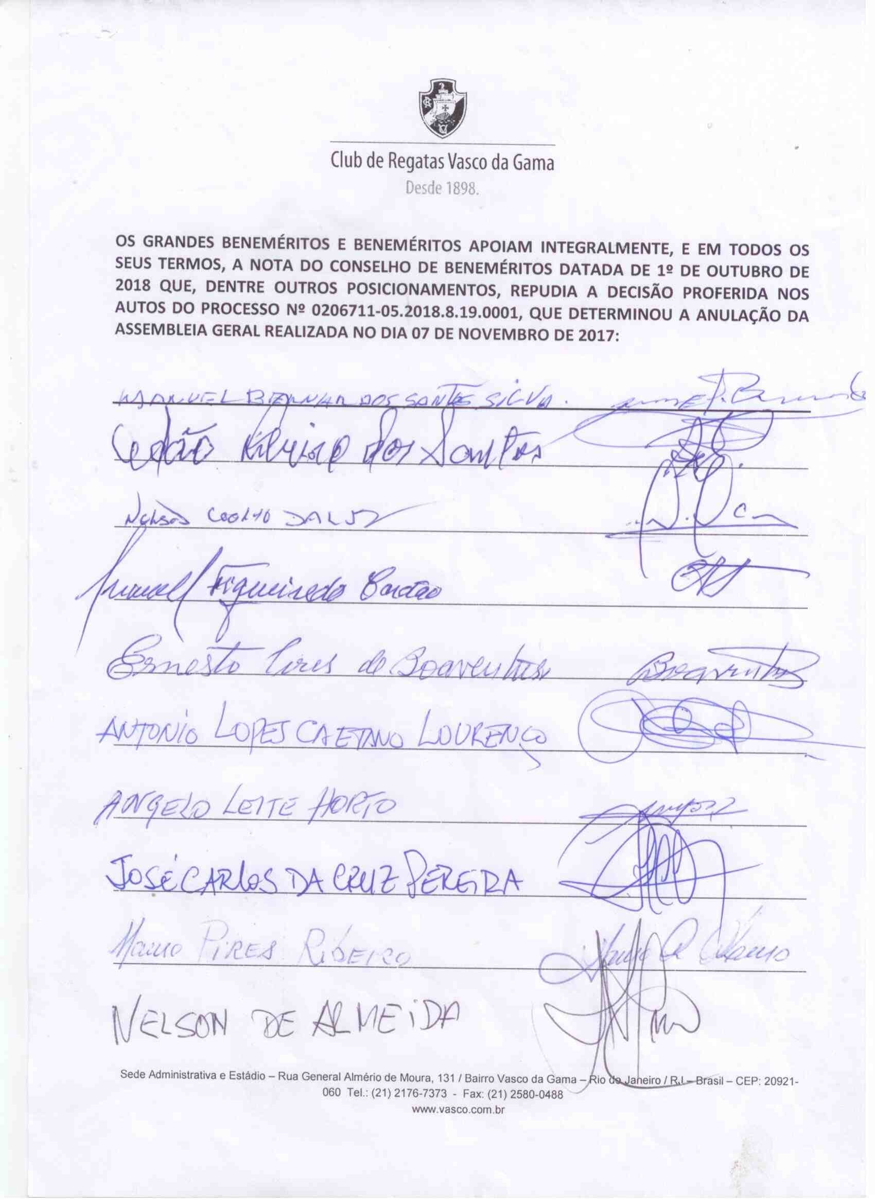 05/10/18 - Veja pedido de inclusão dos subscritores da Chapa Azul na ação da anulação das eleições do Vasco