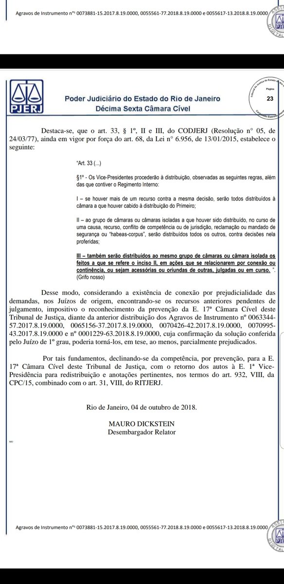 URGENTE! Desembargador relator sorteado para os recursos na ação que anulou a eleição do Vasco, Mauro Dickstein julgou de uma vez só os três recursos para derrubar a liminar e declinou competência para a desembargadora Márcia Ferreira Alvarenga, que anulou a urna 7 #lanceVAS