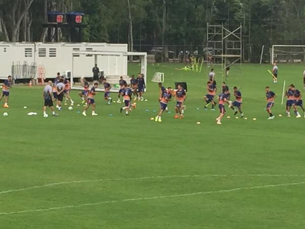Raul, de chuteira amarea, voltou a treinar com o grupo. Rildo também está ali. Mas não serão relacionados ainda #lanceVAS