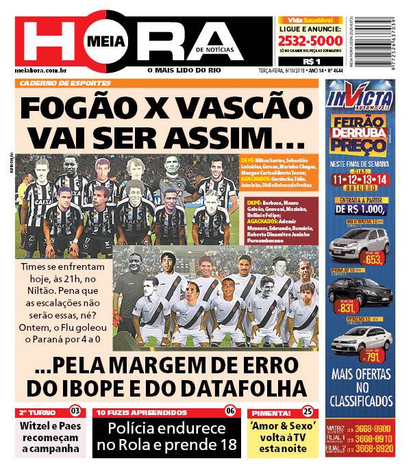 Jornal 'escala' ídolos no Vasco em manchete que ironiza institutos de pesquisa: 'Margem de erro'