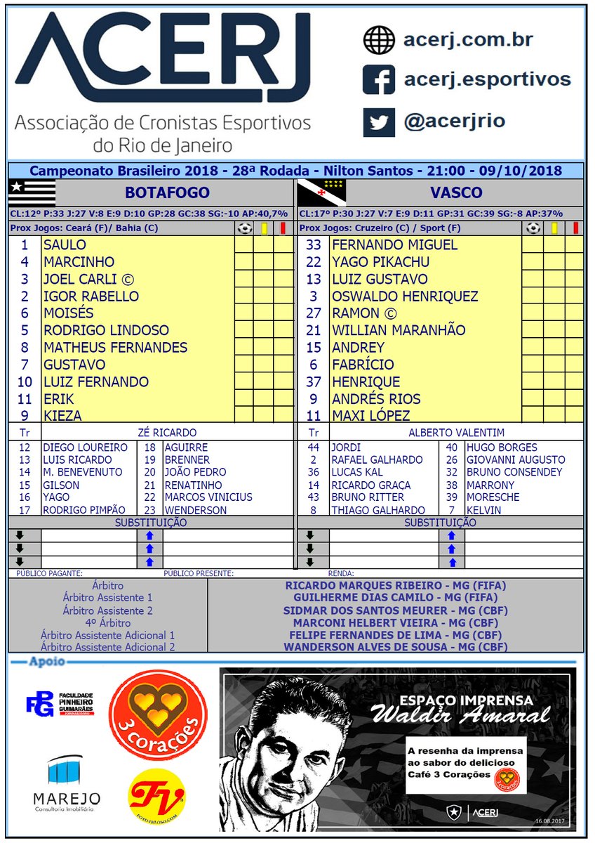 Escalações de Botafogo e Vasco pela 28ª Rodada do Campeonato Brasileiro 2018 no Nilton Santos #acerjinforma #BOTxVAS #brasileirão #SerieA