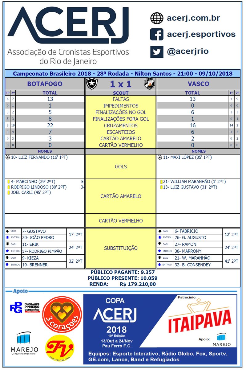 Scout Final de Botafogo e Vasco pela 28ª Rodada do Campeonato Brasileiro 2018 no Nilton Santos #acerjinforma #BOTxVAS #brasileirão #SerieA