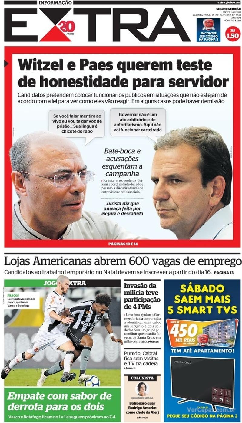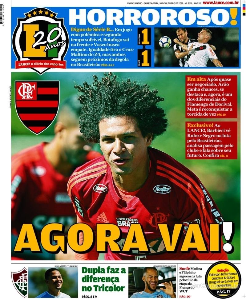 Veja como a imprensa destacou o empate do Vasco diante do Botafogo