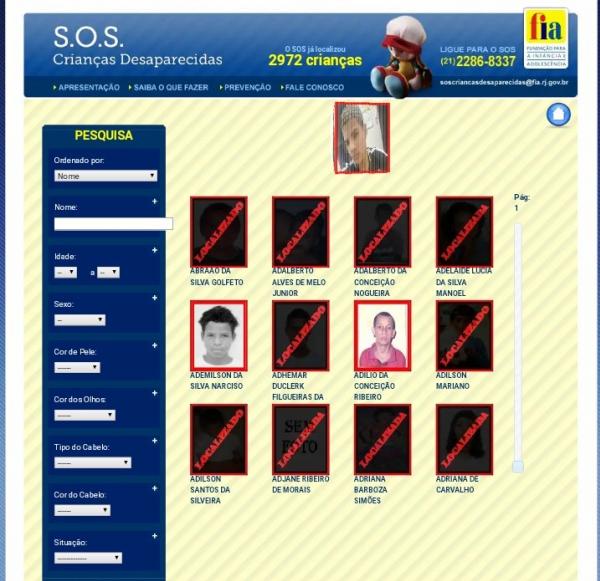 Acesse o site S.O.S Crianças Desaparecidas do Estado do Rio de Janeiro.