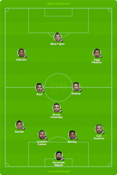 No meio, a opção de Valentim é reforçar a marcação. Cosendey formará o setor com Andrey e Raul - este último também volta ao time após se recuperar de lesão. O trio de ataque deve ser composto por Yago Pikachu, Fabricio e Maxi López.