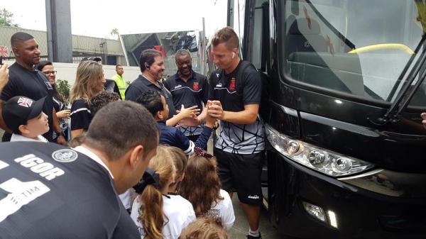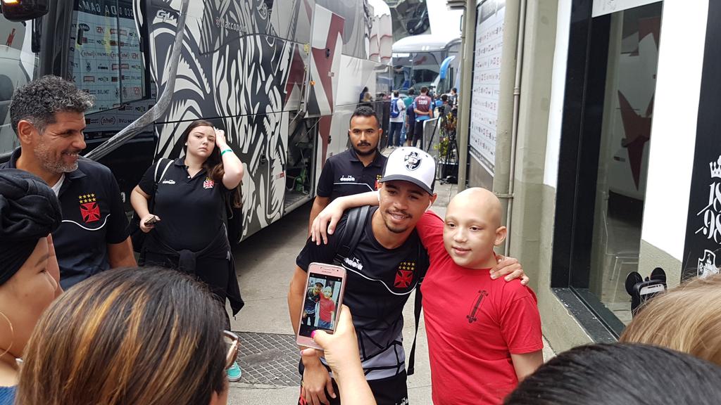 Maxi López e Yago Pikachu são festejados por crianças em São Januário
