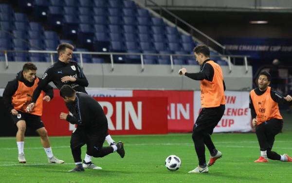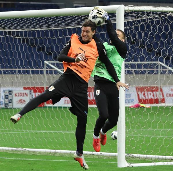 Martín Silva treinou na linha antes da partida do Uruguai contra o Japão; veja fotos