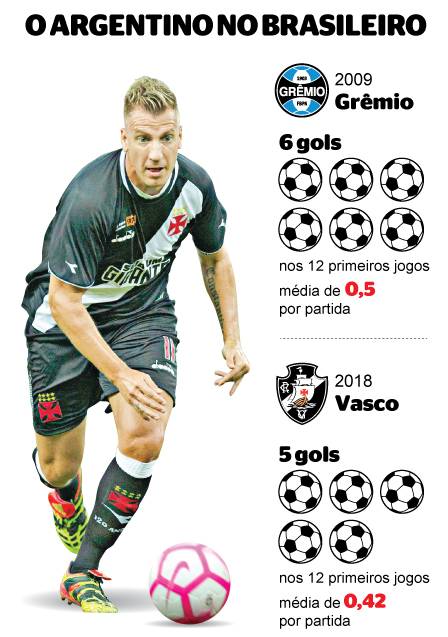 Nos seis jogos de invencibilidade do Vasco no Brasileiro, a melhor sequência do time até agora, Maxi López só não esteve em campo no 1 a 1 diante do Santos. Com cinco gols em 12 partidas, o último deles na vitória de domingo sobre o Cruzeiro, por 2 a 0, o camisa 11 tem sido fundamental para a equipe. O argentino de 34 anos — que chegou à Colina há três meses em meio a um jejum iniciado em setembro de 2017, quando atuava na Udinese, da Itália — hoje tem média de 0,42 gol por partida.