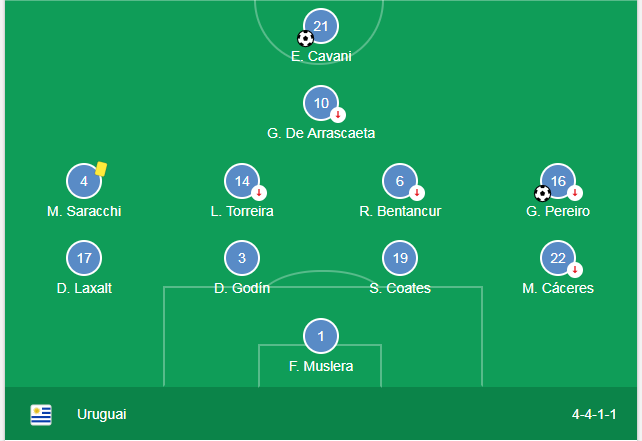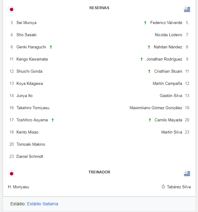 Na segunda etapa, Edinson Cavani deixou o seu aos 12 minutos, colocando o placar em igualdade novamente, mas o gol não foi o suficiente para uma virada, ainda mais porque Doan e Minamino fecharam a conta para os orientais. Jonathan Rodríguez descontou aos 30 minutos.