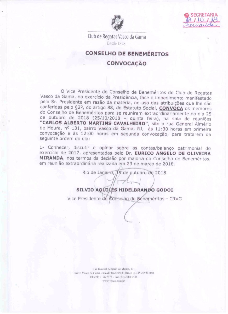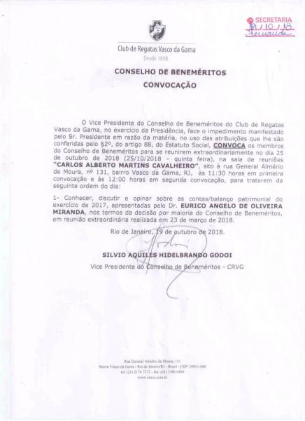 O Vice presidente do "a urna 7 é toda nossa" convoca conselho p/ análise de balanço paralelo e contas de 2017, que ainda têm salários atrasados, sem parecer do Conselho Fiscal.