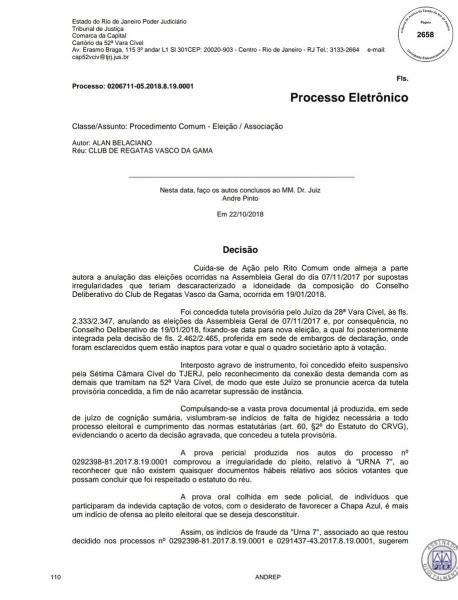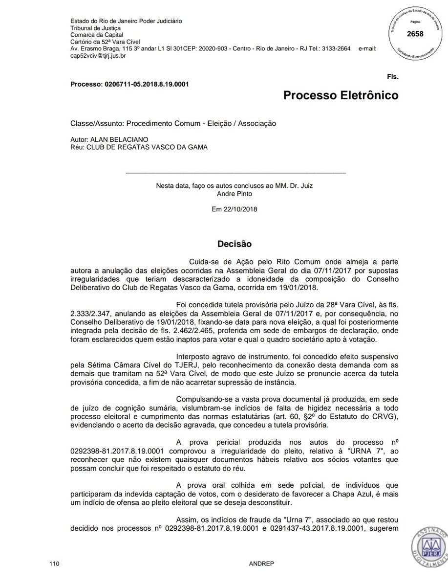 URGENTE! Juiz auxiliar André Pinto, da 52a Vara Cível do Tribunal de Justiça do Rio de Janeiro, concede liminar e eleição do Vasco volta a ser anulada #lanceVAS