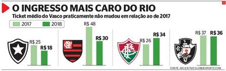 Ajudar o Vasco a se manter na Primeira Divisão não está sendo tarefa das mais baratas para o torcedor. O clube, que aumentou o preço dos ingressos para o jogo contra o Internacional, sexta-feira - a arquibancada, por exemplo, foi de R$ 40 para R$ 60 -, já tem o ticket médio mais caro entre os grandes do Rio.