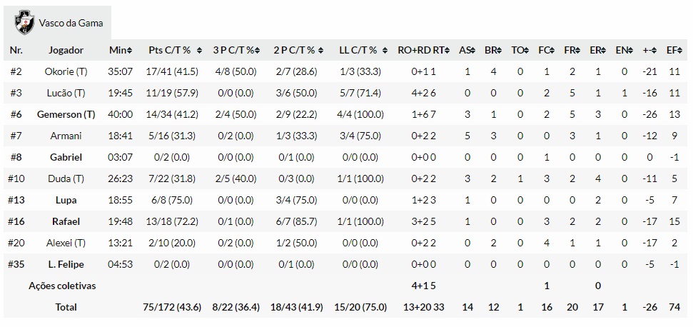 Desgastado por ter jogado na terça (o Franca não atuou no meio da semana), o Vasco viu a distância crescer no último quarto e passou a tentar diminuir a vantagem do adversário, mas o adversário conseguiu aproveitar os espaços.