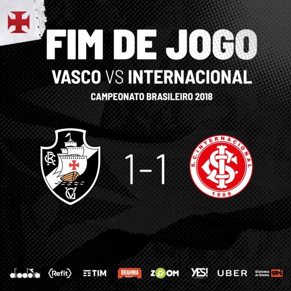 Vasco, via Twitter: 'O empate veio no fim. A luta continua'